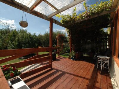 ⢠New timber north facing deck with overhanging grapevine