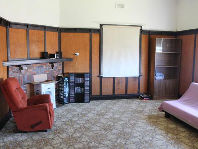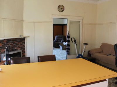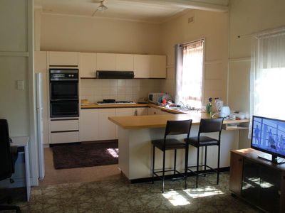 Lounge room with gas heating, kitchen with gas stove and electric oven and plenty of space for a big dining table or second living area.