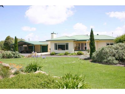 A beautifully renovated home with 2 bedrooms, ensuite, 3 living areas (one living room would convert to a bedroom), 20m indoor solar heated pool with shower and toilet. Separate entertainment shed with open fire and pizza oven. Beautifully established garden. Double garage, double carport, 8 bay shed with extra height in north door, extra storage sheds, cattle yards, Irrigation Licence, distant sea views etc. This property has a lot on offer. Call for an inspection today.