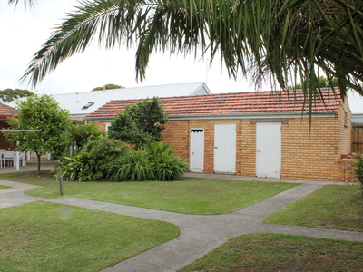 Additional features include small storage sheds, raised garden beds for veggies and a rain water tank.