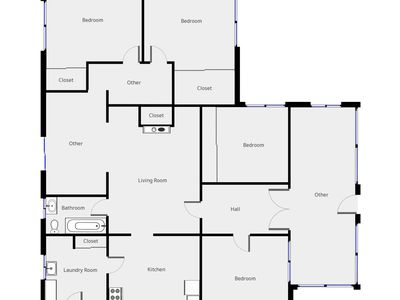 Inside the house features 4 bedrooms, which could easily be changed to 3 bedrooms 2 living area. Sun room, combined kitchen and living with a sliding door access to outside and gas heating.